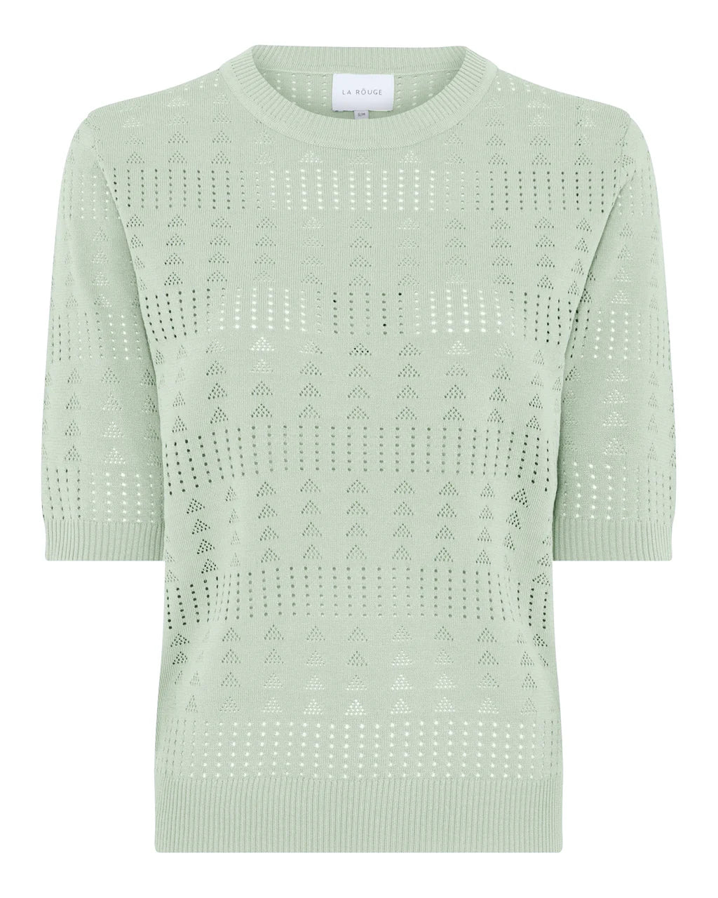 Alma Knit er stutterma peysa úr prjónaefni með fínu gatamynstri sem gefur létt og loftkennt útlit. Einfalt snið gerir það þægilegt og auðvelt að nota í daglegu lífi.