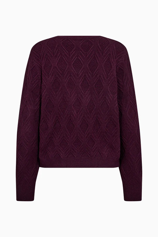 Elevated texture meets rich colour. The Jasmin O-Neck Knit is spun in a soft wool blend and features an intricate, diamond-shaped cable pattern that adds subtle depth to the classic crew-neck silhouette. With ribbed trims and a flattering straight fit, it's a timeless layering piece