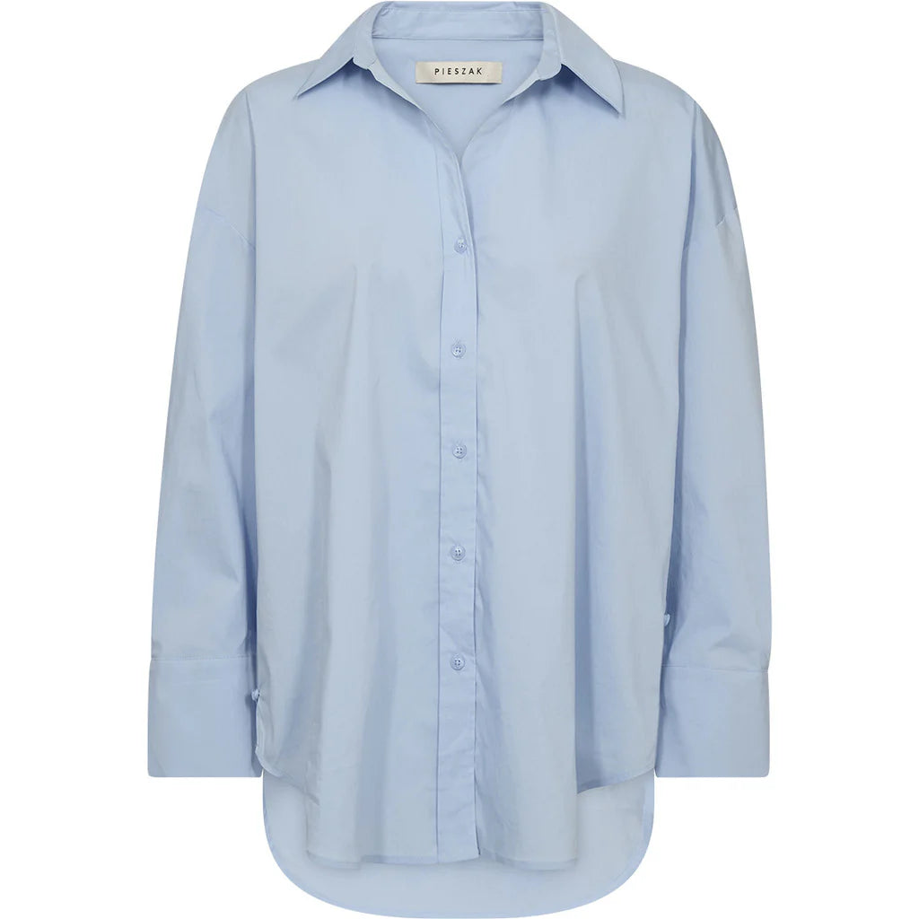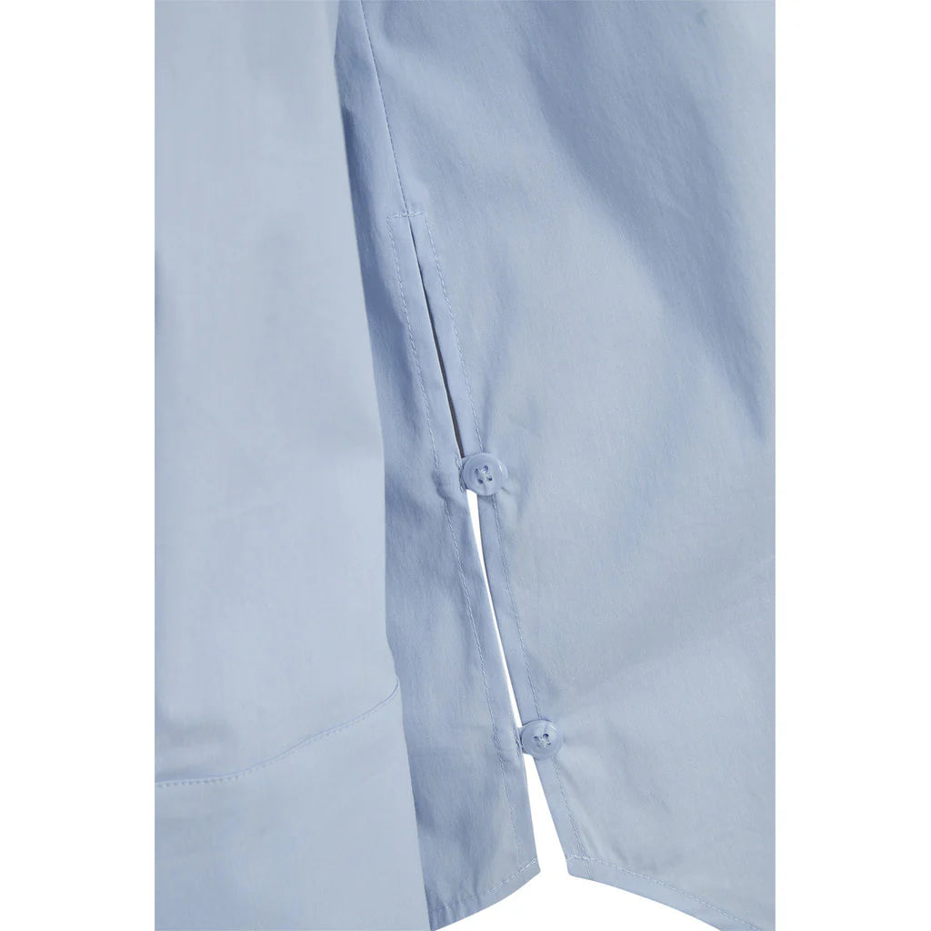 A crisp essential with an easy silhouette. Nyla blends classic shirting with modern volume – think sharp collar, soft shoulders, and oversized cuffs. Side button details let you shape the look to suit your mood.