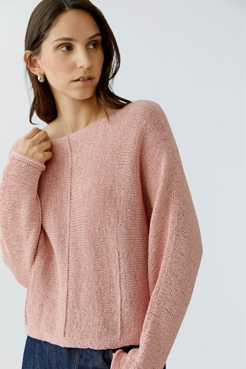 Ribbon yarn Pullover with knitted dart details