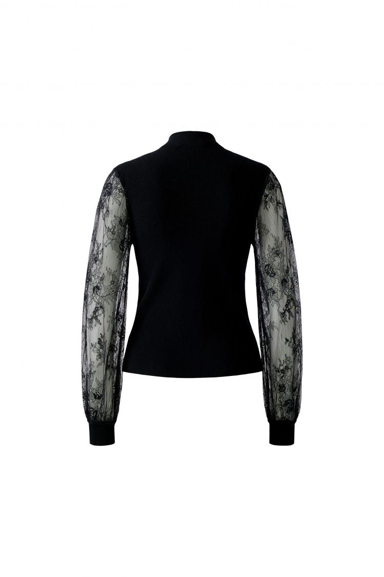 Highlight pullover - subtly sexy: transparent balloon sleeves made of floral lace in contrast to the tonal knit with stand-up collar